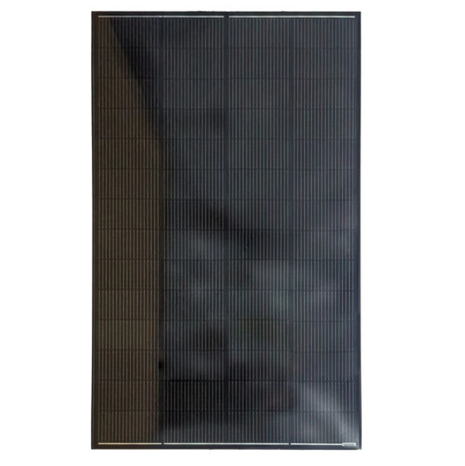 Фотоэлектрический модуль мощностью 300 Ватт, изготовлен по технологии TOPCon N-Type M12 монокристалл. Модуль имеет закалённое остекление фронтальной поверхности толщиной 3,2мм и анодированную алюминиевую раму черного цвета, толщиной 30мм. Категория качества Grade A+.