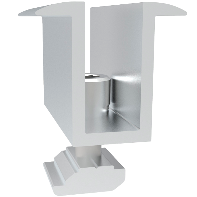 Серединный зажим для крепления солнечных панелей к монтажному профилю. Выполнен из анодированного алюминиевого сплава Al 6005-T5.